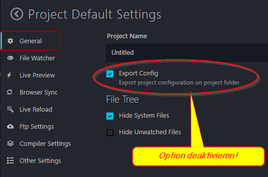 "Export Config" deaktivieren. - Compiler Settings > SASS: