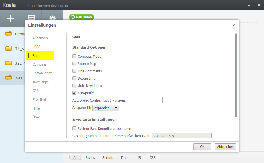 Neben den kommerziellen Programmen kommen für den Anwender hierfür u.a. auch zwei infrage, die für den nicht-kommerziellen Einsatz kostenlos verwendet werden können: Prepros und Koala.