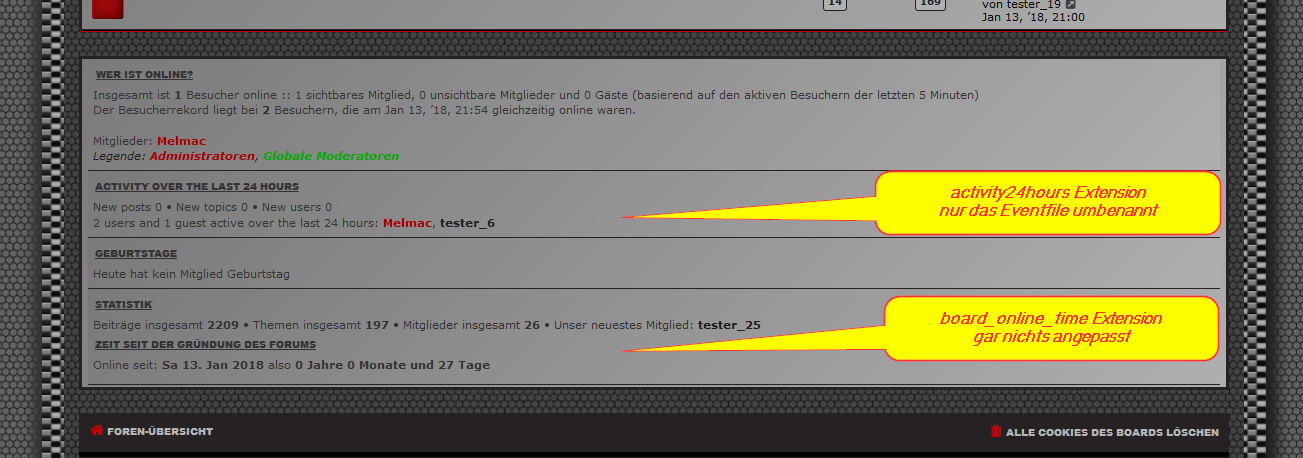 <br>{{ TOTAL_24HOUR_USERS }} {{ USERS_24HOUR_TOTAL }} {{ HIDDEN_24HOUR_TOTAL }} {{ GUEST_ONLINE_24 }} {{ lang('LAST_24_HOURS') }}{% if not USERS_ACTIVE %}{{ lang('NO_ONLINE_USERS') }}{% else %}{% for lastvisit in loops.lastvisit %}{% if lastvisit.S_FIRST_ROW %}<br>{{ lang('REGISTERED_USERS') }} {% endif %}{{ lastvisit.USERNAME_FULL }}{% if not lastvisit.S_LAST_ROW %}{{ lang('COMMA_SEPARATOR') }} {% endif %}{% endfor %}{% endif %}