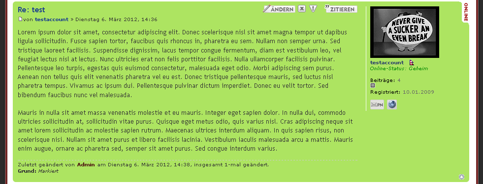 Dies kann wie gesagt nach persönlichen Vorlieben angepasst werden. Man kann die Abfrage postrow.MARK_POST auch an anderen Stellen anwenden, je nach Vorlieben.