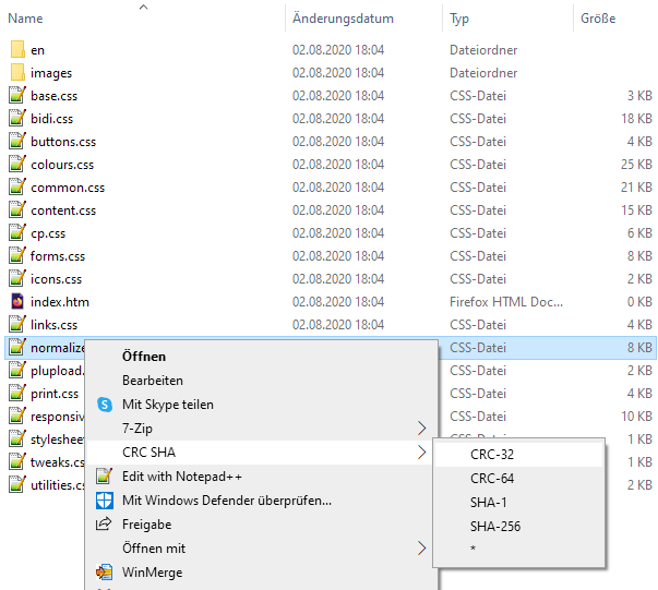 1. Ebenfalls einen Hash der einzelnen Datei bilden und dort ergänzen. Den Hash kann z. B. mit 7-zip erstellen (Rechtsklick > CRC SHA > CRC-32) und dort eintragen (siehe Screenshots)