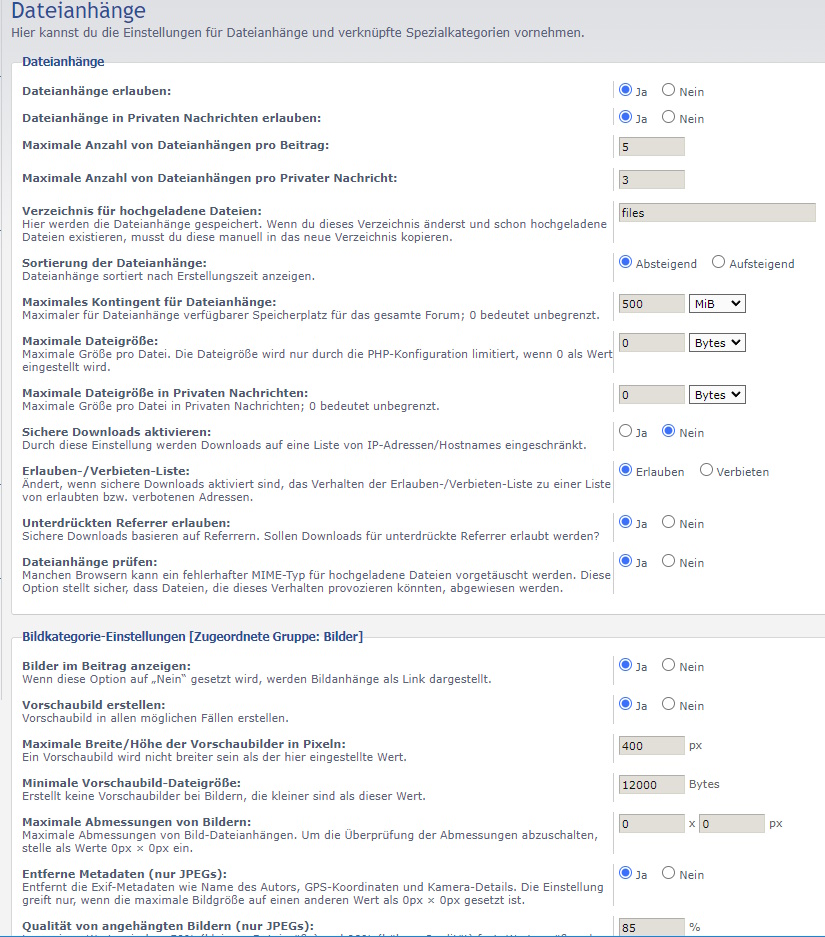 Die Maximalgröße für Dateianhänge in meinem Forum beträgt 2MiB.
