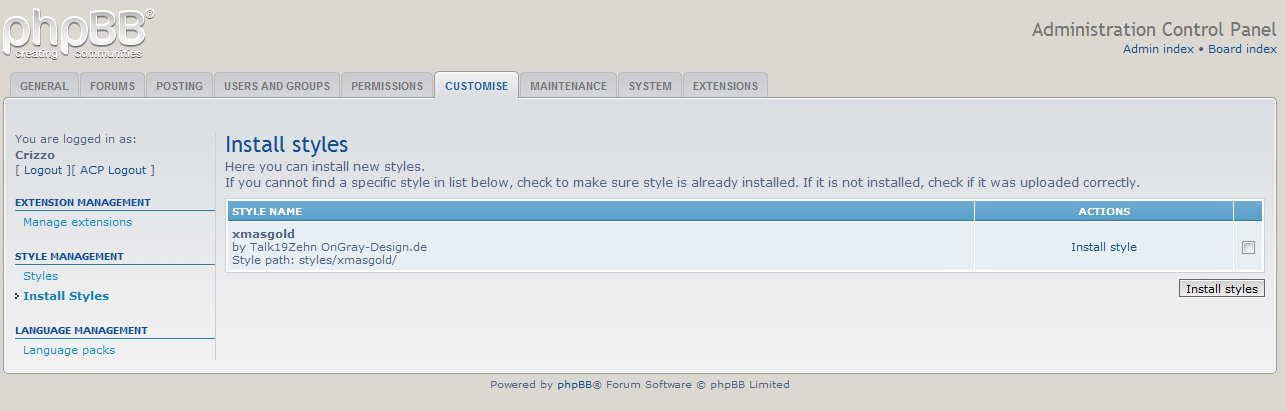 Re: Style lässt sich nicht installieren