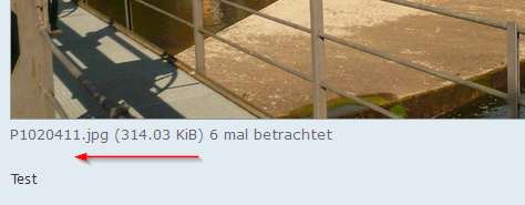 Hi Melmac, wenn ich diese Grafik (the_gap_3.png ....) interpretiere, sagt sie mir, dass nach dem Dateianhang das geschriebene Wort "Test" in einer neuen Zeile steht. Das signalisiert in dem Falle --> <br> (Interpretation im Firefox mittels Firebug) und jene neue Zeile hat zur Folge, dass eine Zeile eingefügt wird, - oder? Ob das jetzt deutlich war (auweia)?