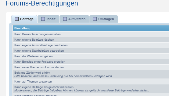Forenrechte (für alle Benutzer in allen Foren):