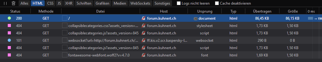 Firefox, die integrierten Developer Tools und hierbei die Laufzeit- bzw. Netzwerkanalyse