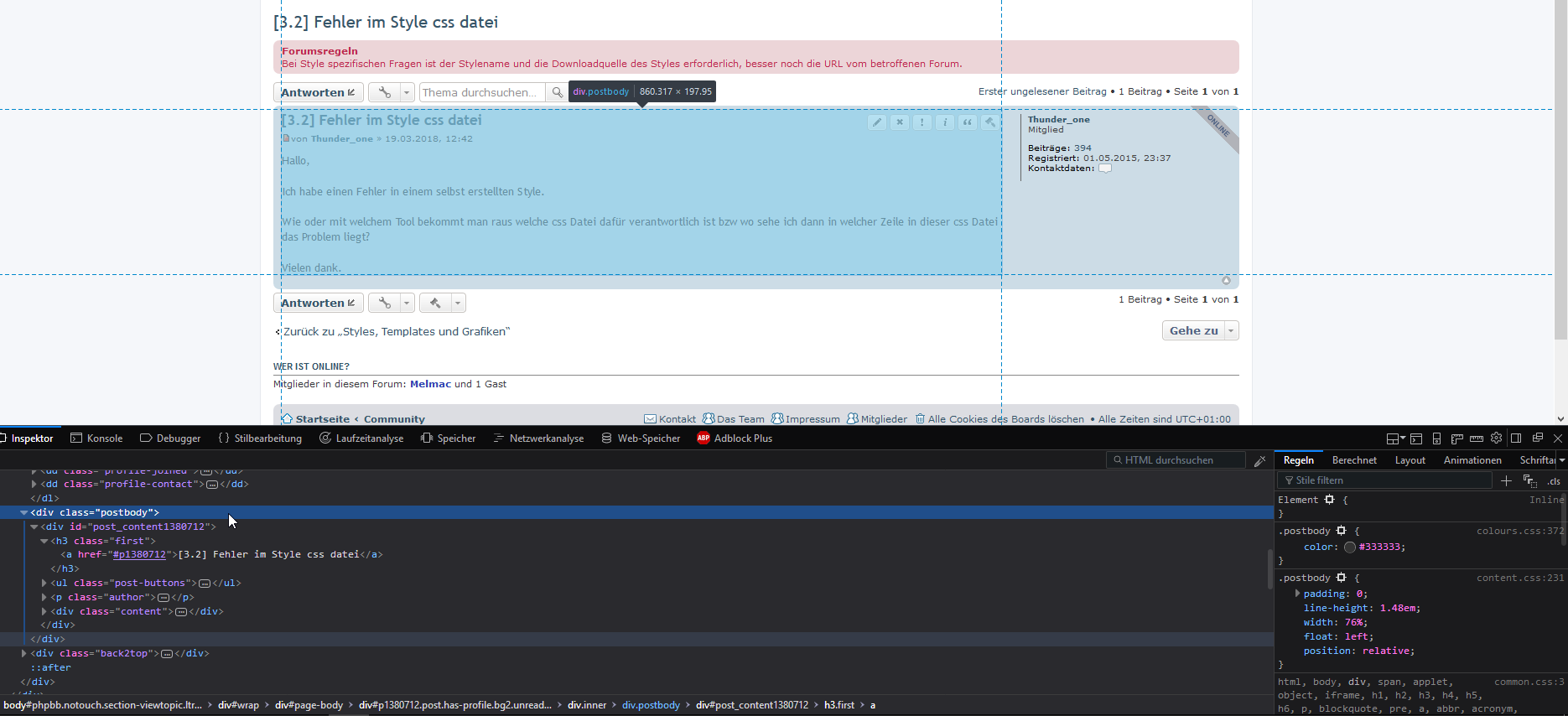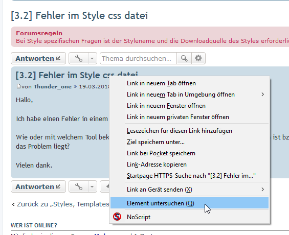 Bei Style spezifischen Fragen ist der Stylename und die Downloadquelle des Styles erforderlich sowie die URL vom betroffenen Forum.