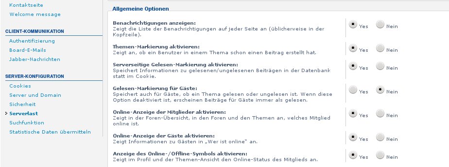 Wenn das auf "Nein" steht, werden die Informationen zu ungelesenen Beiträgen in Cookies gespeichert, die evtl. vom Benutzer beim Schließen des Browserfensters automatisch gelöscht werden. Dann sind beim nächsten Aufruf (oder auch beim Aufruf von einem anderen Rechner/ Browser) keine vernünftig zu nutzenden Ungelesen-Markierungen vorhanden