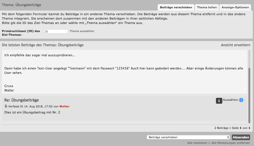 Also z. B. Beiträge verschieben. Da komme ich nicht mit klar. Ich soll entweder die ID eingeben oder das Thema.