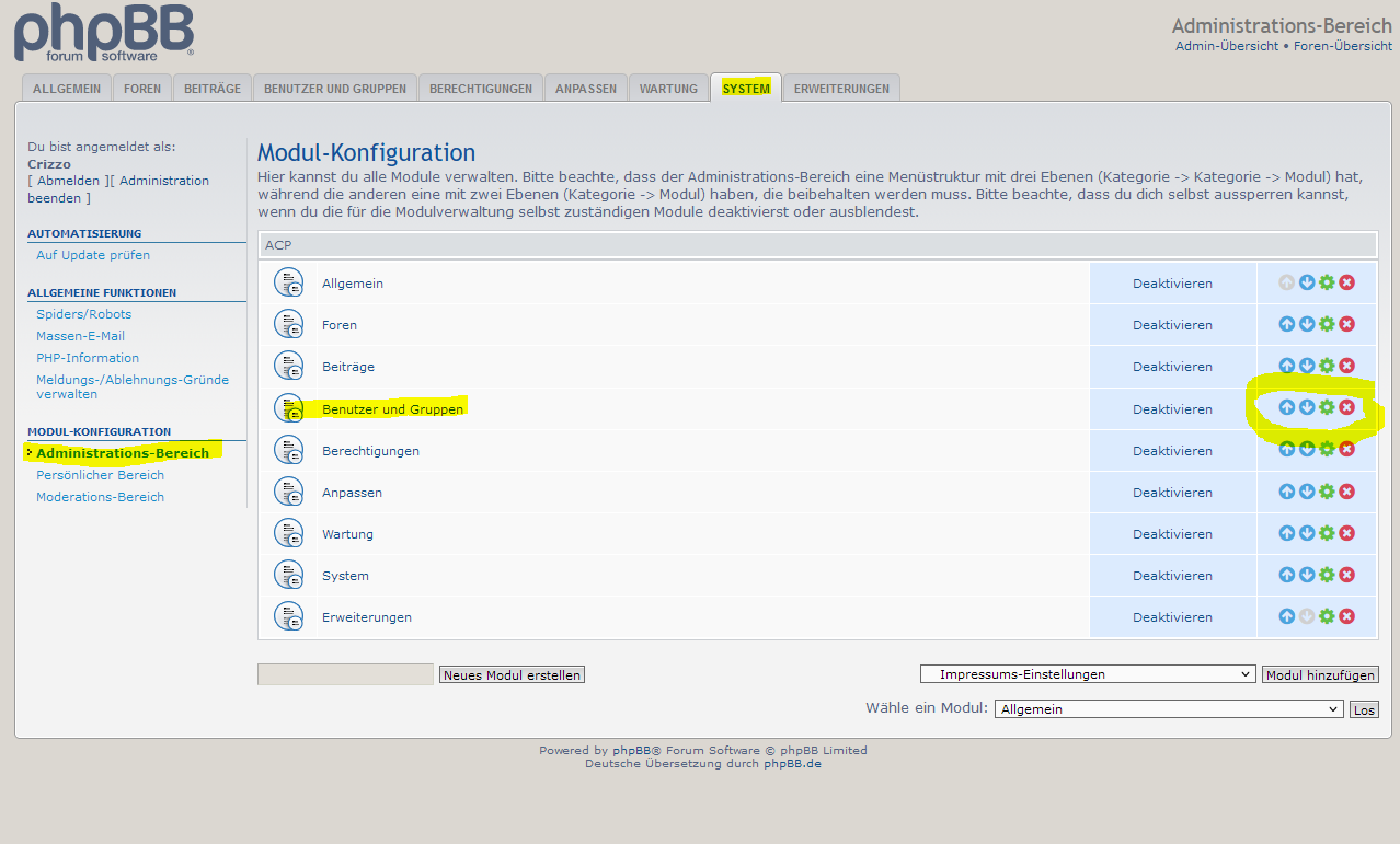 Bitte im Thementitel den Präfix deiner phpBB-Version angeben