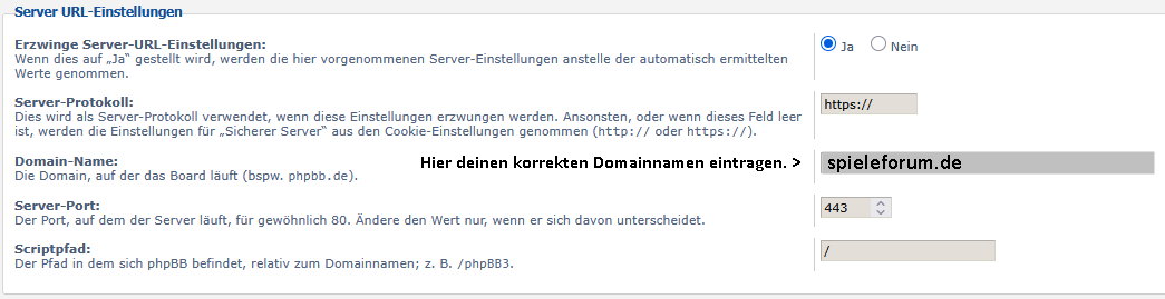spieleforum.de ist nur ein Beispiel.Was ist denn mit der Einstellung „Erzwinge Server-URL-Einstellungen“?